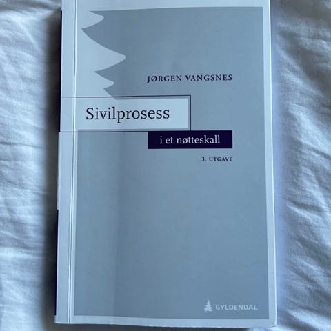 Jørgen Vangsnes «Sivilprosess i et nøtteskall» lærebok i rettsvitenskap. Boken omhandler sivilprosess og gir en oversikt over sentrale regler og prinsipper innen prosessrett. Egnet som pensumlitteratur eller støttebok i juridiske studier innen rettsvitenskap, særlig knyttet til sivilprosessfaget. Dersom du er interessert i de andre bøkene på bildet, send melding så ordner vi det slik at det blir én pakke