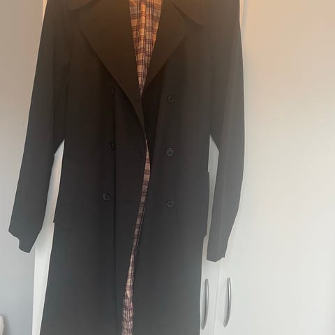 Lett kåpe i grønnrutete stoff, forseggjort m lommer og klaff på ermer