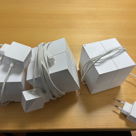 Cudy M1200 mesh WiFi-system i hvit farge. Består av tre enheter som sammen gir trådløst nettverk i bolig eller kontor. Systemet er beregnet for å utvide og forbedre dekningen av eksisterende internettlinje ved å plassere nodene på ulike steder i hjemmet. Egnet for mer stabil og jevn WiFi-dekning i flere rom.
