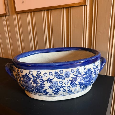 Fin krukke/potte for planter/krydderurter. Overflaten har en craquelé-effekt i glasuren som gir den et vakkert preg. Mål: B20xD11,5xH12,5 cm