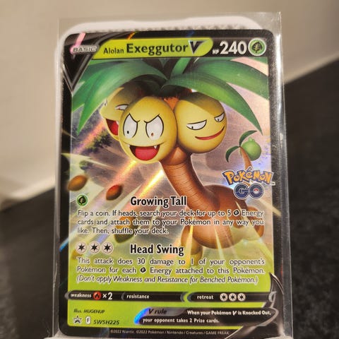 Alolan Exeggutor ex #133 fra settet Surging Sparks, rett fra pack til sleeve.