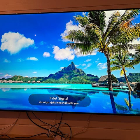 TV-en har dessverre fått en liten trykk på venstre side ellers fungerer den helt fint.