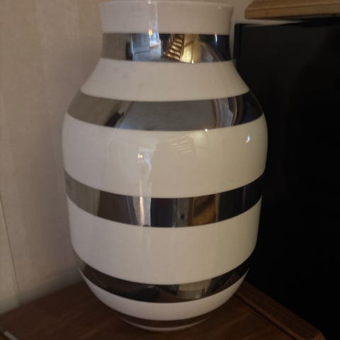Kähler vase 31 cm høy i tidløst design med horisontale striper i hvit/sølv.
