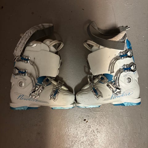 Nordica ACP alpinstøvler i størrelse 28.5 (tilsvarende 44EU). De har fire justerbare spenner og power strap øverst for bedre tilpasning rundt leggen. Sålelengde er 325 mm.