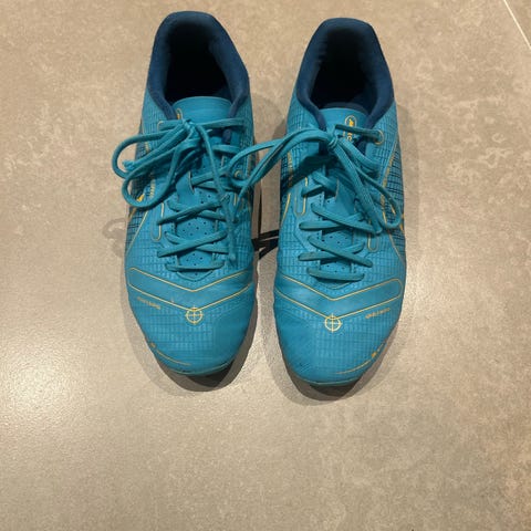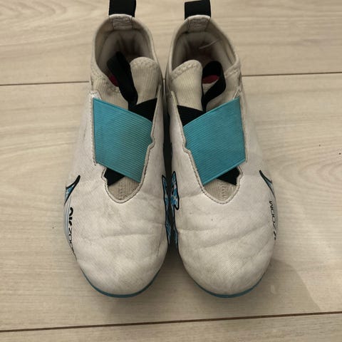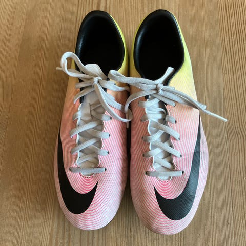 Nike Mercurial Superfly fotballsko i blågrå og rosa med mønster og store svarte Nike-logoer. Navnet Oscar er trykket på skoene, og skjuler seg under den svarte tapen. Modellen har sokkelignende ankelkrage og elastisk stropp over vristen i stedet for tradisjonelle lisser. Yttersålen har faste knotter tilpasset spill på kunstgress. Overdelen er i syntetisk materiale som er lett å rengjøre.
