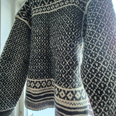 Spook- genser i uvanlige farger, lekker koksgrå/beige. Hel overvidde 110 cm, lengde 60 cm, armlengde 50 cm. Varen kan sendes mot at kjøper betaler frakt.