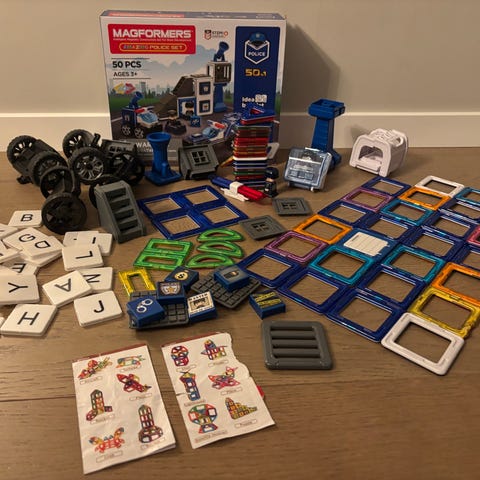 4 komplette sett med MAG Polydron fra Lekeakademiet selges.