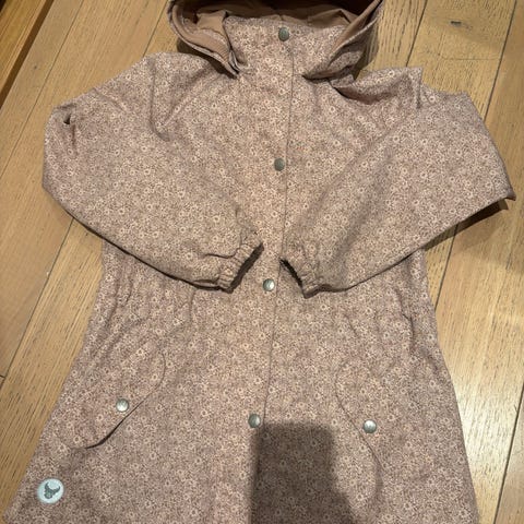 Wheat jakke for jente i størrelse 152. Jakken er beige med småmønstret trykk og har hette. Yttermaterialet er Gore-Tex, som gjør jakken egnet som ytterjakke i vått og vindfullt vær. Lukkes med glidelås og trykknapper foran, og har lommer i front. Passer til hverdagsbruk og utendørsaktiviteter.