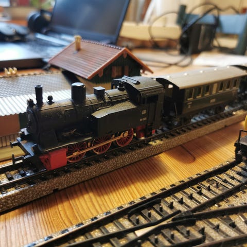 Fleischmann damplokomotiv med ekstra tannhjul for bratte stigninger.
