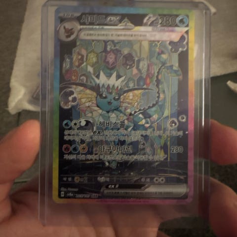 Pokémon Espeon EX samlekort holo. Kortet viser Espeon i fullart-design med holografisk overflate. Dette er et Pokémon TCG-kort beregnet for samling og spill i Pokémon Trading Card Game. Baksiden har standard Pokémon-design med pokéball-motiv.