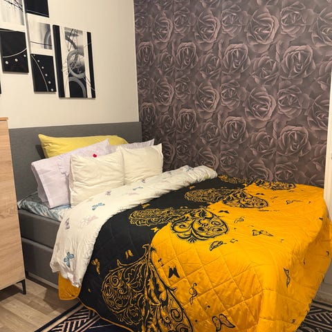 Seng og gavl er i tekstil,