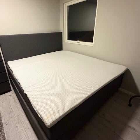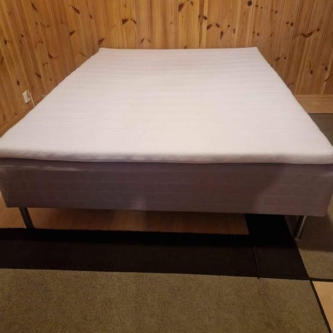 Selger en ikea rammemadrass med sorte bein.