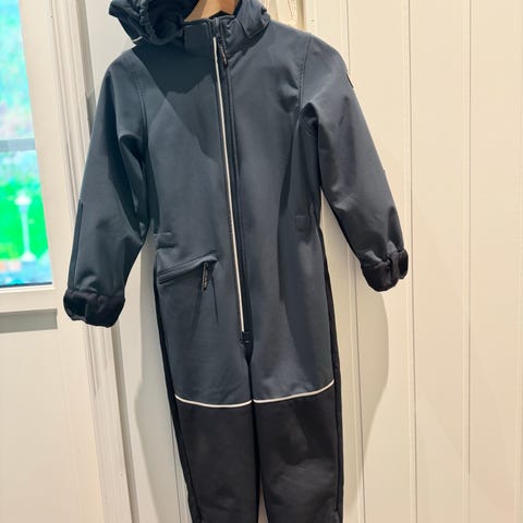 Helt og pent 🤩 Foret tegnsett fra Bruse i str 8år 💙 Alt er intakt. Lukkes med glidelås og knapper på jakken. Lommer foran. Bukser med sele og strikk under fot.