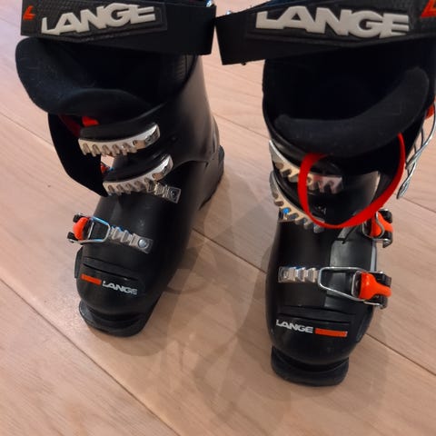 Lange RS alpinstøvler i svart med oransje detaljer. Støvlene har fire justerbare spenner i metall og kraftig powerstrap øverst for god tilpasning rundt leggen. Modellen har RS-logo på siden og polstret innersko med oransje felt ved hælen. Egnet til alpint bruk i preparerte bakker.