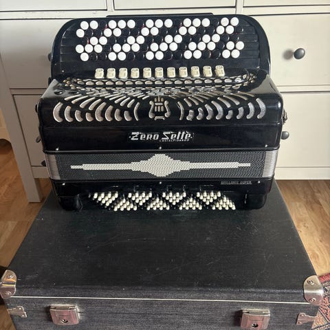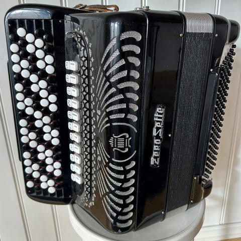 Roland FR-4x digitalt trekkspill i svart utførelse. knapper Norsk system på diskantsiden, med flere registre og kontroller på fronten. Trekkspillet er elektronisk/digitalt og tilhører V-Accordion-serien fra Roland. Medfølgende trekkspillbag fra Roland med bærehåndtak og skulderreimer for transport og oppbevaring reserveknapper ++