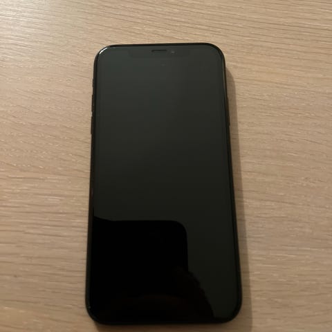 Apple iPhone XR mobiltelefon med 64 GB lagringskapasitet. Telefonen er i fargen svart. Skjerm og bakside i glass med kameramodul på baksiden. Batterihelse vises til 77 % maksimal kapasitet på skjermbildet. Flere deksler følger med, både gjennomsiktige og mørke varianter, tilpasset samme modell. Egner seg til vanlig bruk som samtaler, meldinger, sosiale medier, bilde- og videoopptak samt apper som støttes av iOS for iPhone XR-serien.