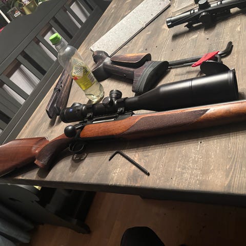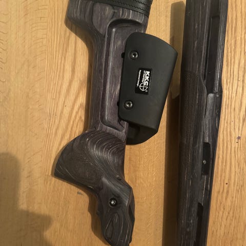 Velger å selge KKC stokken min jeg har hatt i 3 år nå. Vært og modifisert den hos børsemaker. Så derfor det er 2 skruer i den. Funker helt utmerket
