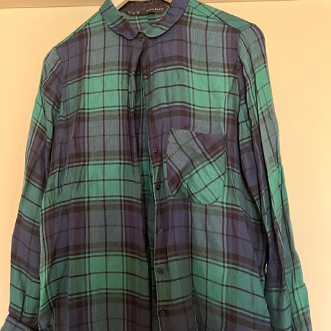 selger denne fine blå farga skjorten. Er litt stor i størrelsen, og litt lang dm om du ønsker mer bilder! Er en liten flekk som er lagt ved i bilde 3