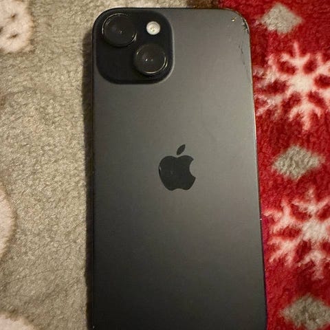 Apple iPhone 15 smarttelefon i hvit farge. Modellen har dobbelttkamera på baksiden og helskjerm foran med berøringsstyring. Egnet for vanlig daglig bruk som samtaler, meldinger, sosiale medier, surfing og apper. Støtter nedlasting av apper fra App Store, tilkobling til Wi‑Fi og mobildata, samt bruk av tilbehør som deksler og skjermbeskyttere til iPhone 15-serien.