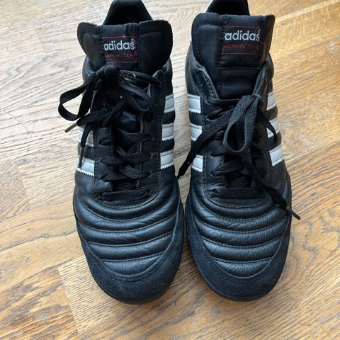 Fotballsko i skinn for bruk på kunstgress og grus, Adidas Team Mundial i str. 44. Skoene er i god stand. Har ikke vært brukt på mange år. Kan sendes dersom kjøper betaler forsendelsen.