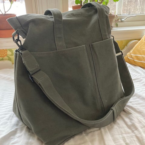 Vesken er håndlaget i slitesterk bomullscanvas og har åtte smarte lommer som gjør det enkelt å holde kontroll på alt fra laptop og mobil til nøkler, lommebok og andre nødvendigheter. Med målene 38 × 25 × 38 cm får du god plass, uten at vesken oppleves stor eller klumpete. Den kan bæres på tre måter – i håndtak, over skulderen eller som crossover – slik at du enkelt kan tilpasse den etter behov gjennom dagen.