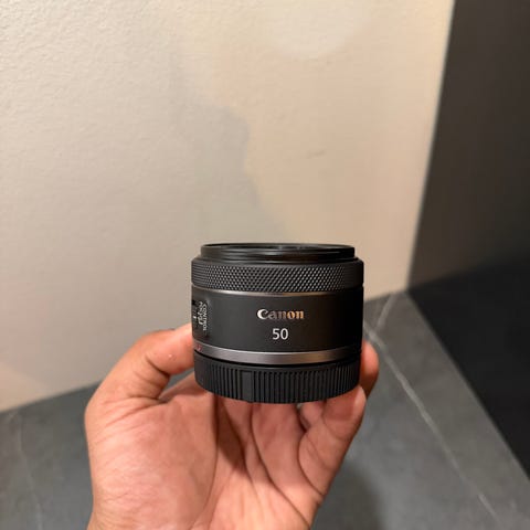 Selger et pent og lite brukt Canon RF 50mm F1.8 objektiv med ES-65B solblender grunnet oppgradering.