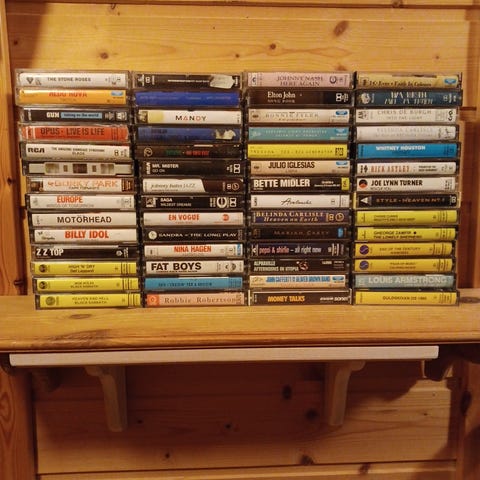 Selger her noen kassetter med norske artister og band. Noe av dette begynner å bli vanskelig å få tak i...