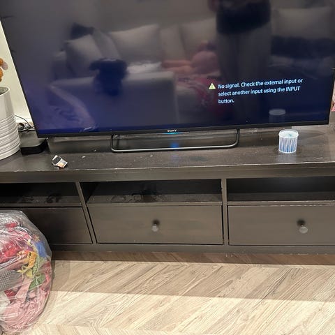 Selges på grunn av flytting, avbildet med 55 tommers TV. Høydejusterbar midthylle
