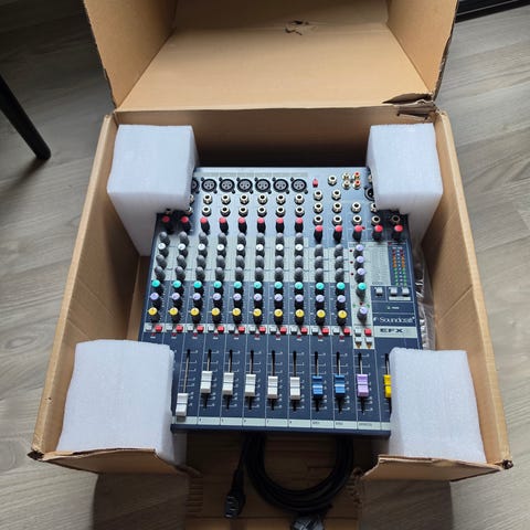 8 kanals mixer med to ekstra stereo kanaler og diverse klanger og delay. Funker bra til pa.