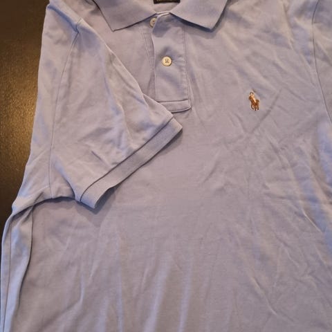 Ralph Lauren Polo chinos for herre i størrelse 18 står det på buksen vet ikke helt vilken størrelse det er. Buksen er i blå farge og laget av bomull. Klassisk chinos-modell med beltehemper, sidelommer og baklommer. Passer til hverdagsbruk og mer formelle anledninger, og kan kombineres med både skjorte og genser.