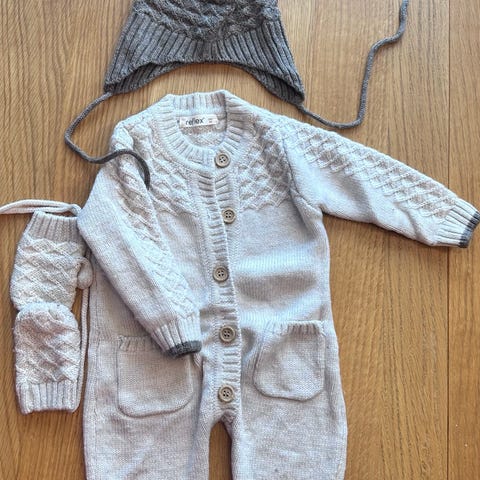 Cubus ull sparkedress i beige, størrelse 50, unisex. Sparkedressen er laget i ull. Modellen har omslag/lukking i front med knyting. Hentedress.