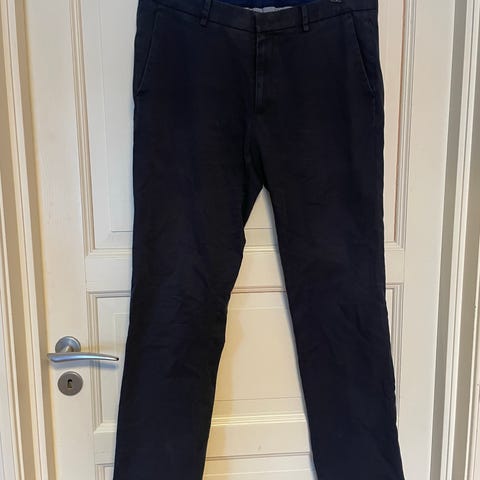 Redford chinos for herre i størrelse XXL. Buksen er blå og laget i bomull. Klassisk chinosmodell med beltehemper, sidelommer og baklomme med knapp. Egnet til hverdagsbruk og mer formelle anledninger der man ønsker en enkel og nøytral bukse i bomull.