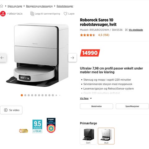 Dreame D10 Plus med automatisk tømmestasjon og vaskefunksjon. Fungerer utmerket til daglig bruk og har flere muligheter for programmering.