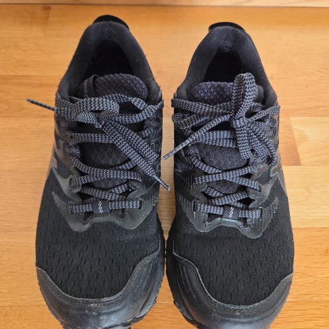Skoen er kun brukt noen få ganger. Årsaken er at de ble kjøpt litt for store til foten.
