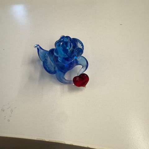 Bohemia Design Iris glassfigur formet som en fugl i klart glass med blå kjerne. Håndlaget dekorasjonsobjekt som kan brukes som pyntegjenstand på hylle, bord eller i vitrineskap. Passer i interiør med glass- og kunstgjenstander. L 11cm H 5cm. Kr 150