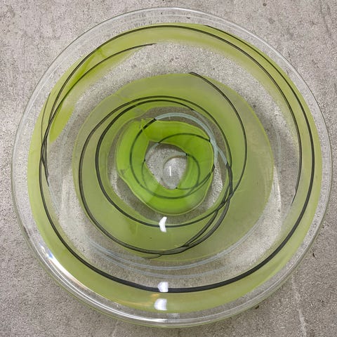 Selger et elegant og dekorativt glassfat på høy stett. Fatet er hele 50 cm høyt og gjør seg utrolig godt som blikkfang på spisebord, kjøkkenøy, skjenk eller i vindu.