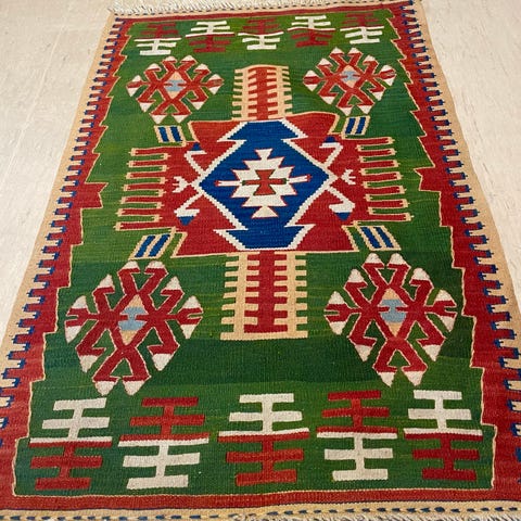 Ekte iransk kelim teppe i ull på ull. Produsert rundt 1985 og dermed over 40 år gammelt. Klassisk håndvevd mønster med klare farger. Pent brukt og godt vedlikeholdt. Profesjonelt renset.