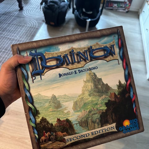 "Deck building"-kortspill hvor du kjøper kort og gradvis bygger et kongerike. Intrigue-utvidelsen følger med.