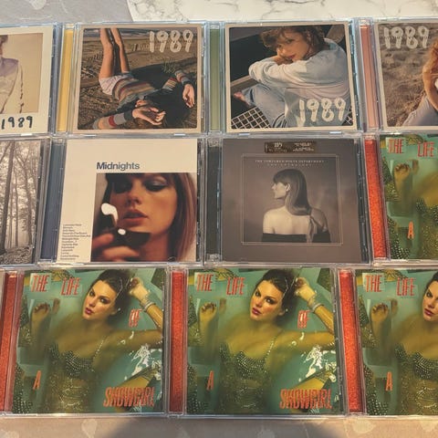 Jeg selger hele Taylor Swift CD kolleksjonen min på grunn av jeg hører ikke på Taylor Swift lenger så jeg føler ikke noe bruk for de.