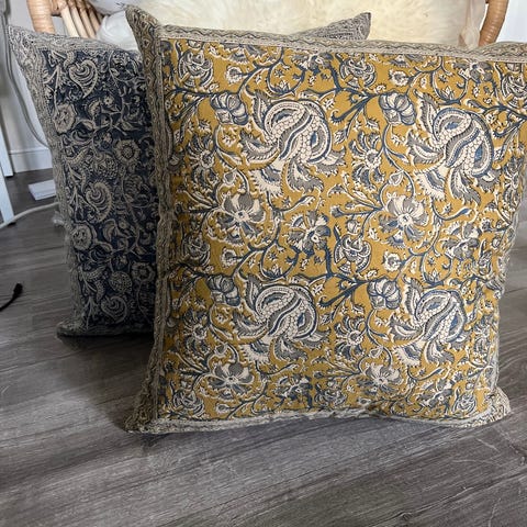 Selger to nydelige Pynteputer i blått lekkert stoff, egensydd.