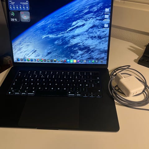 Macbook air 15 inch selges grunnet lite bruk. Den fungerer helt fint og har vært pent bruk. Det er ingen synlige merker eller skader, lader med dobbel usb-c porter
