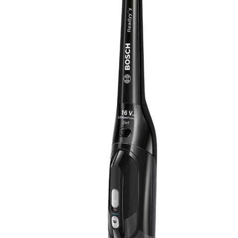 Støvsugeren er utformet som en stående modell med integrert håndtak og munnstykke tilpasset rengjøring av gulv. Den trådløse løsningen gir fleksibel bruk i ulike rom uten behov for direkte tilkobling til stikkontakt.