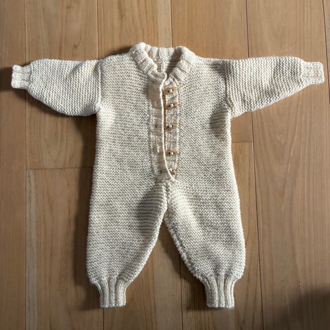 Nydelig hjemmestrikket dress i mykt og varmt garn, størrelse ca. Str 62