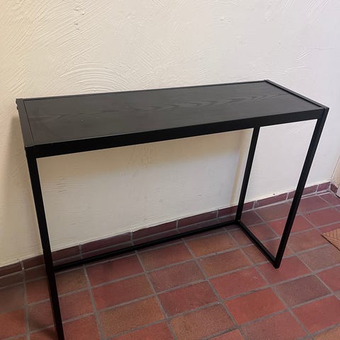 Sort konsollbord/avlastningsbord i sort tre og metall.