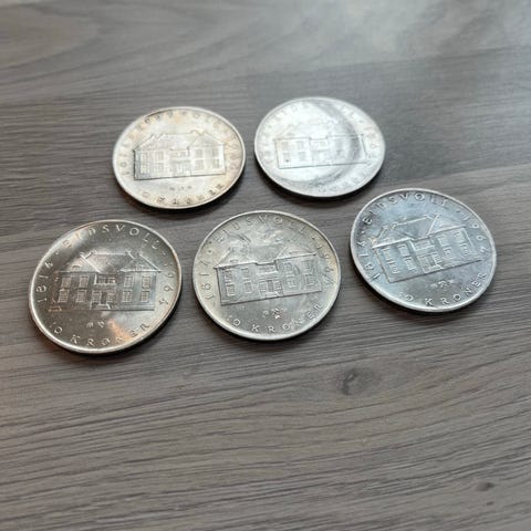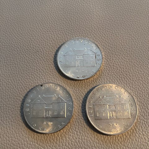 4 stk. 10 kr 1964 Eidsvoll 1814 i sølv kun 3 igjen