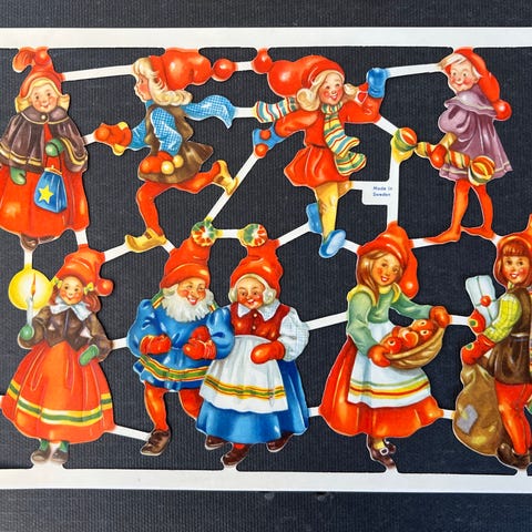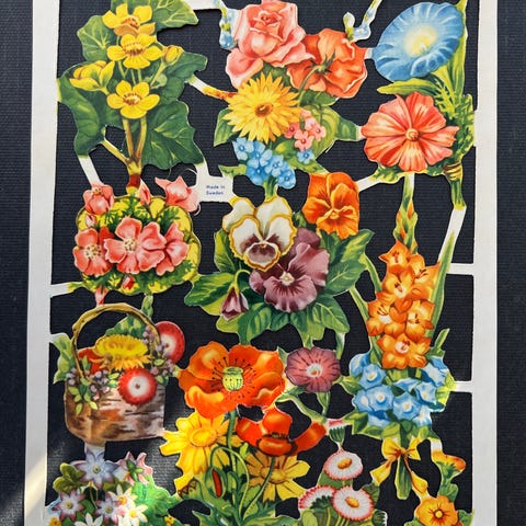 Vakkert gammelt ark med glansbilder i meget god stand.
