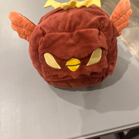 Roblox Blox Fruits kosedyr i sølvfarge. Figuren har et mykt, skinnende ytterstoff og brodert ansikt med hjerteformede øyne. På toppen er det en liten grønn detalj som forestiller stilk eller blad. Kosedyret er formet som en rund figur og egner seg som lekefigur eller pyntegjenstand på barnerom.