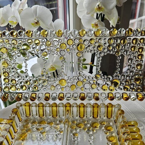 Det finnes synlige bruksspor/slitasje i glasset, men ellers i god vintage-stand og uten skår.