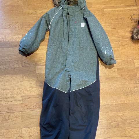 Veldig god og fin vinterdress i str 92. Avtagbar hette med fuskepels. Bred og god strikk i livet så den holder godt rundt kroppen.