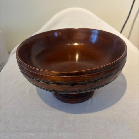 Flott , solid fatt/ bolle i tre med utskjæringer.( eksotisk motiv).